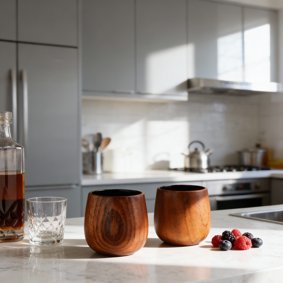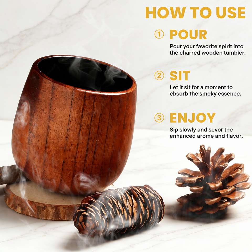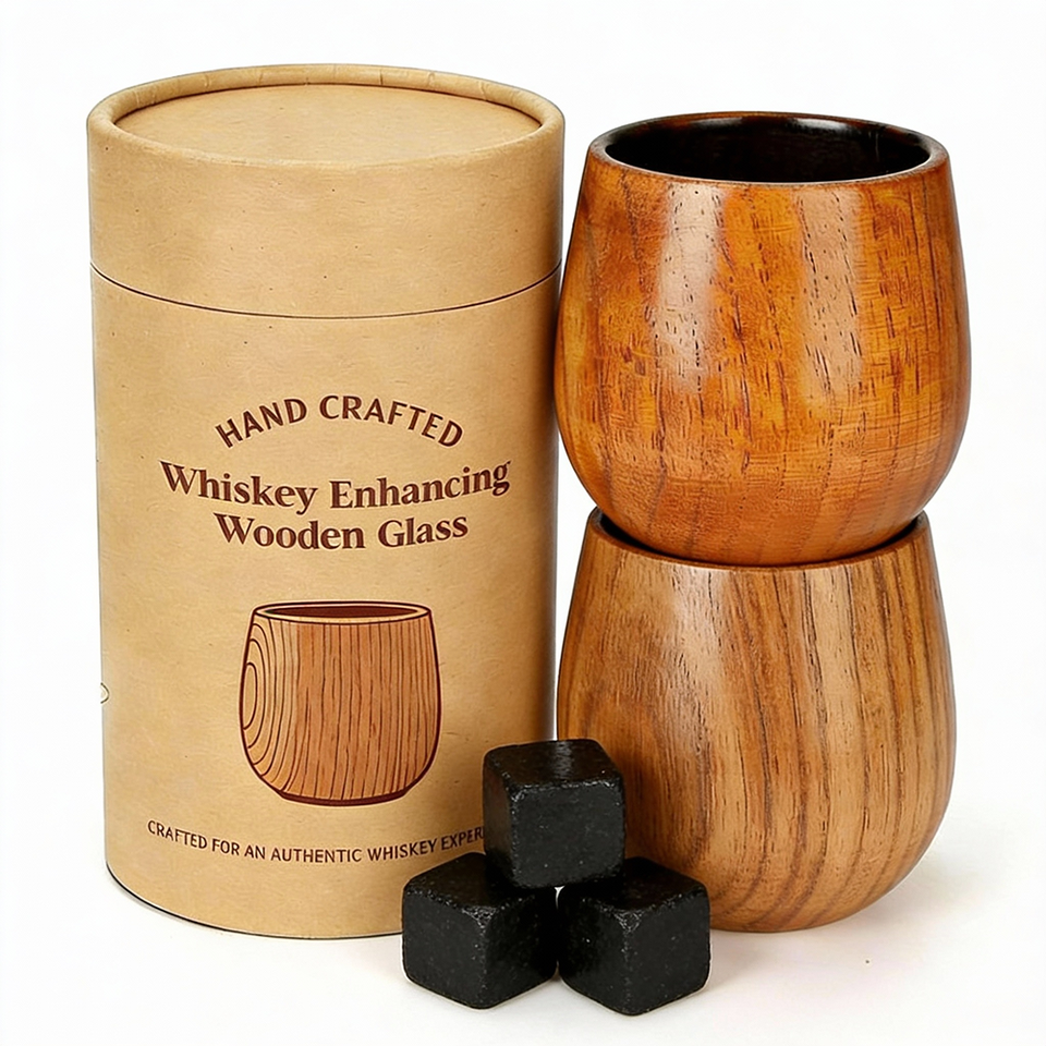 Bicchiere da Whisky in Legno di Quercia Artigianale di Alta Qualità con Logo Personalizzato per Bar Domestico
