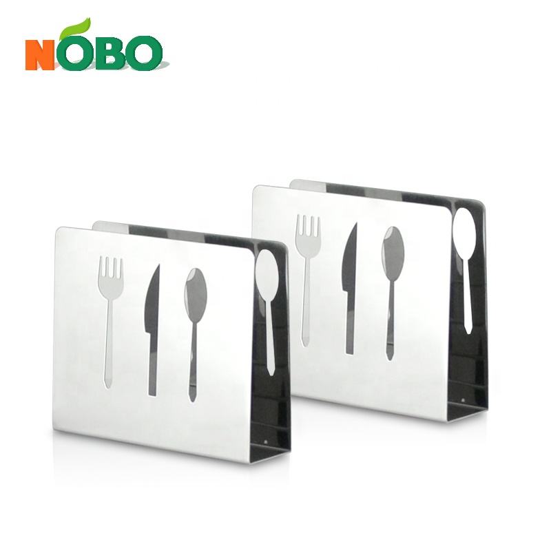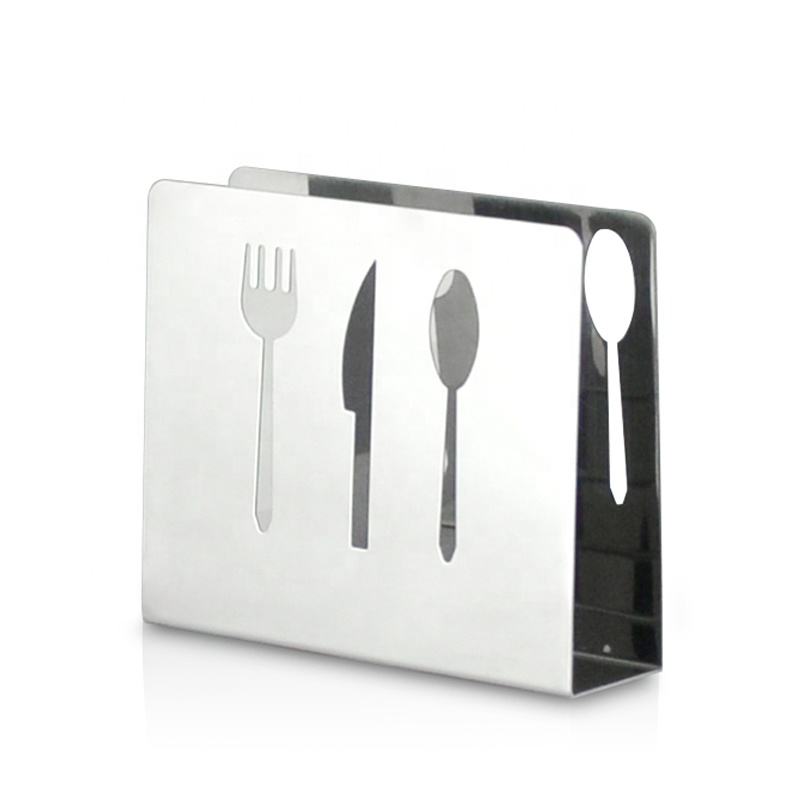Home Basics Funny Standing Stainless Steel Tabletop Tissue Paper Holder Metal Dinner Napkin Holder with Flatware Cut Out