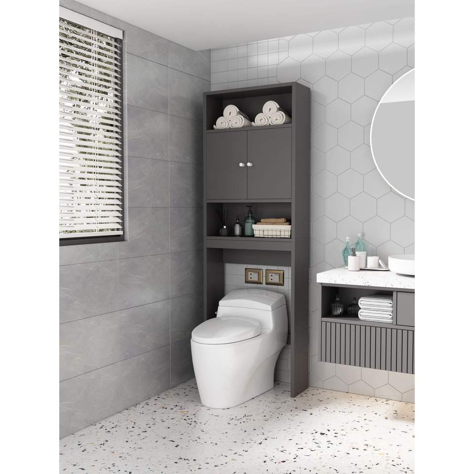Mobiletto Salvaspazio Grigio per Bagno, Sopra il WC, Soluzione di Stoccaggio per Toilette