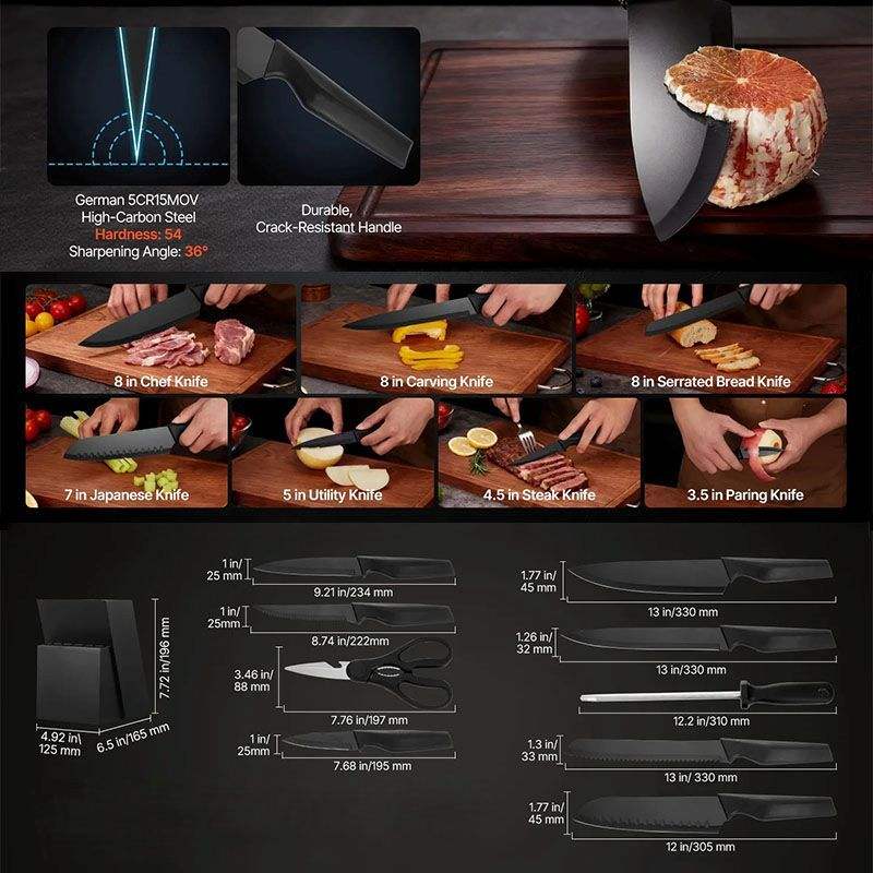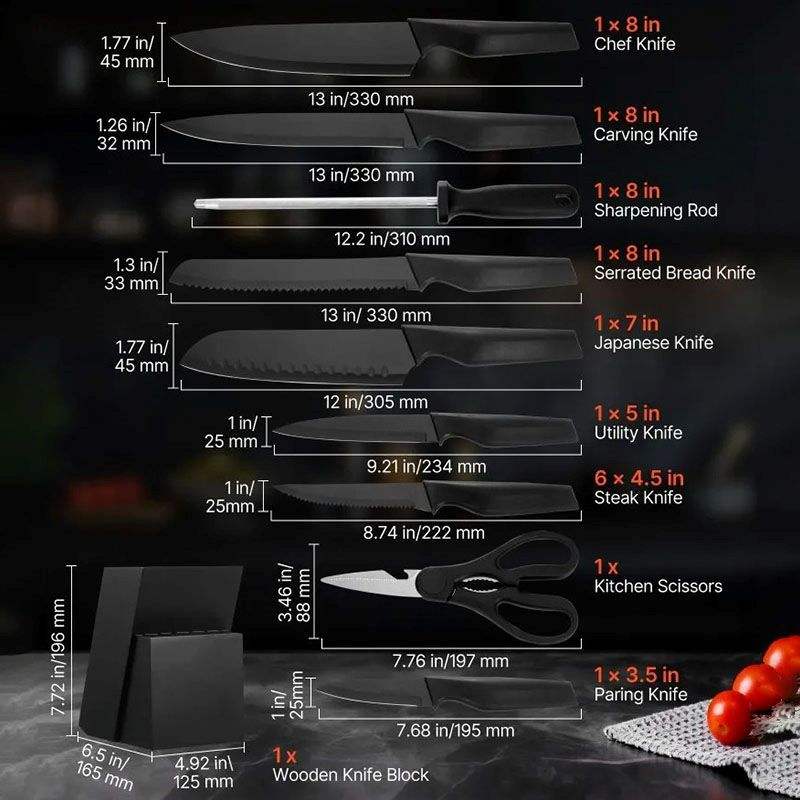 Set di coltelli da cucina per uso domestico con pratico blocco porta coltelli