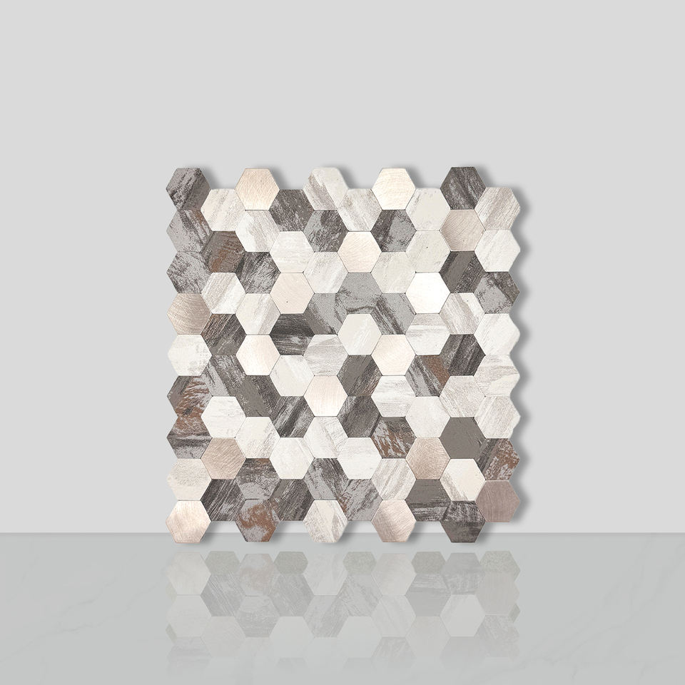 Decorazioni per la casa piastrelle in oro esagono da cucina Backsplash in alluminio tessere da parete a mosaico autoadesive