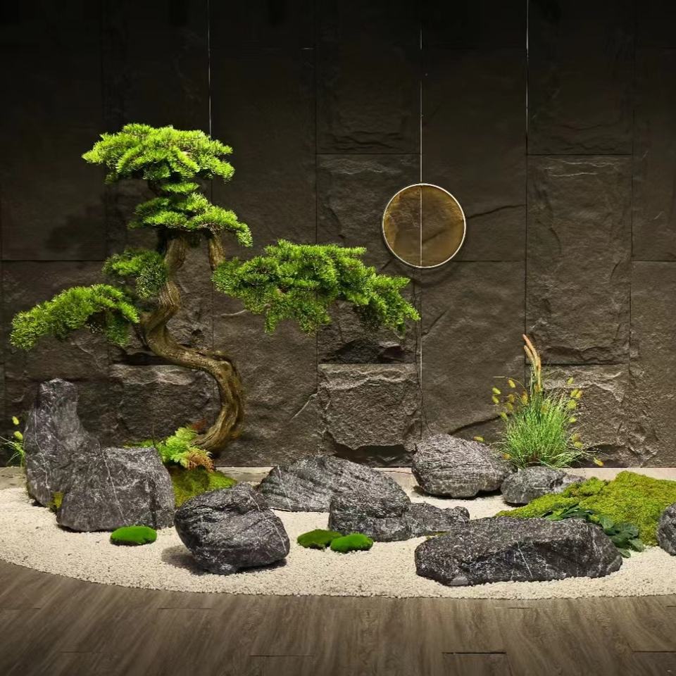Decorazione per la casa ornamenti interni simulazione roccia artificiale vista montagna nera ornamento di pietra per il centro del giardino