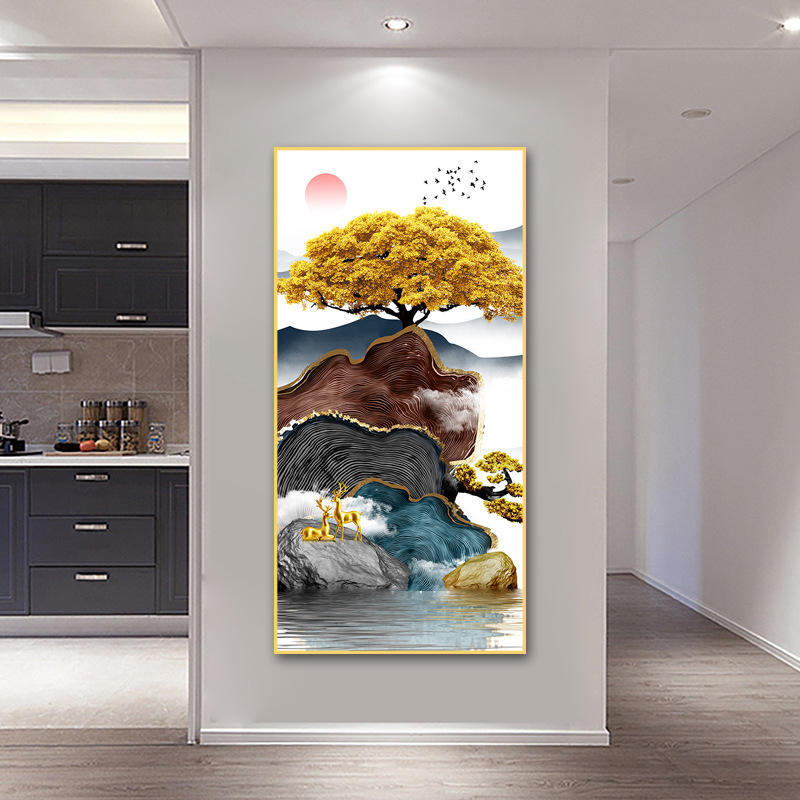 Home Decoration Chinese Abstract Painting Morden Rich Tree and Mountain for Kitchen