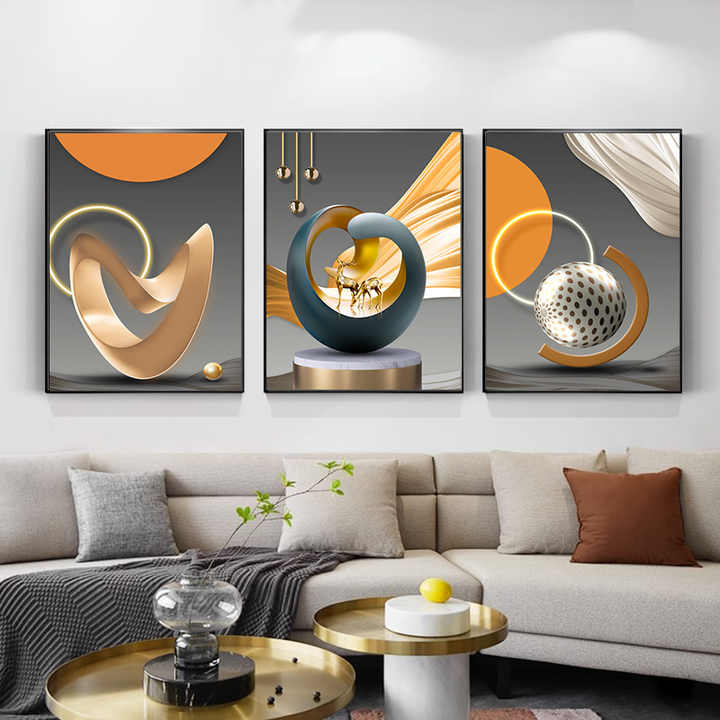 Decorazione domestica geometria arancione Poster di lusso arte da parete Cuadros pittura su vetro moderno immagini opere d'arte stampa su tela astratta