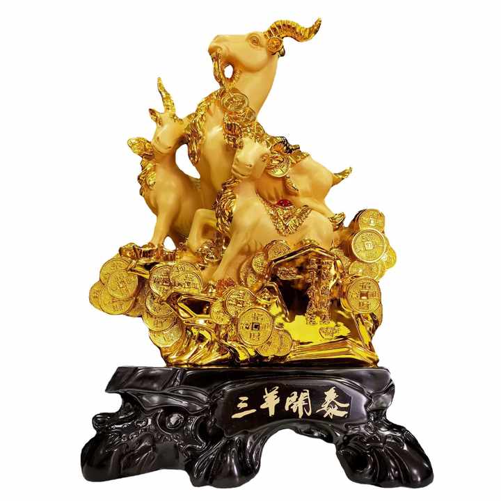 Home Decoration Indoor Ornament Resin Gold Goat Statue for Sale Wood Three Rams Goat Sculpture Statue