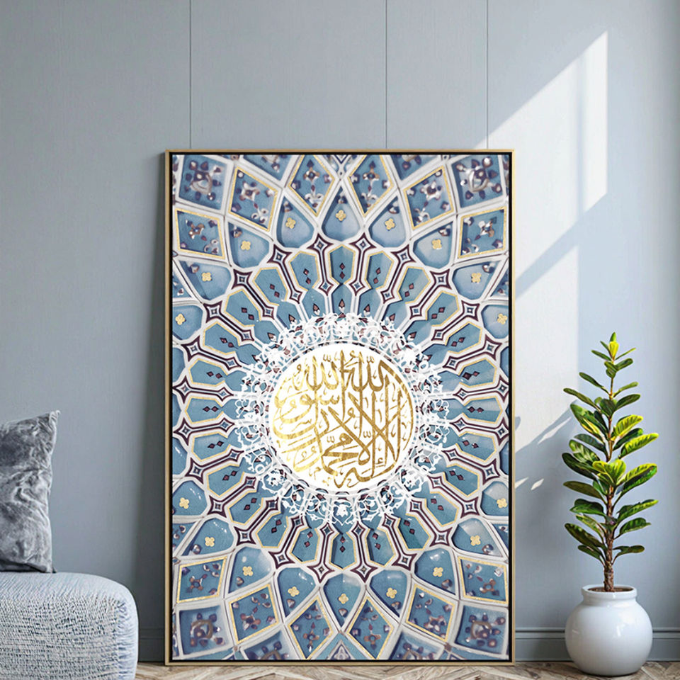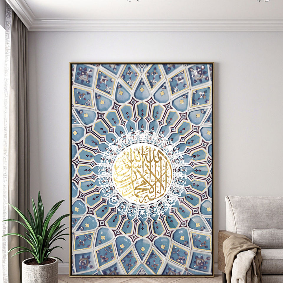 Decorazione per la casa di lusso calligrafia araba Corano versi oro blu parete arte stampata immagini decorazioni islamiche dipinti
