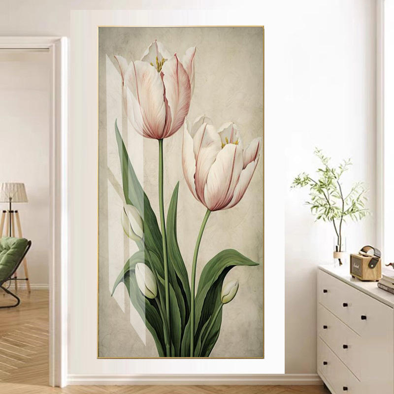 Home Decoration Poster Wall Hanging Art With Metal Frame Flower Tulip Crystal Porcelain Painting Wall Art Painting