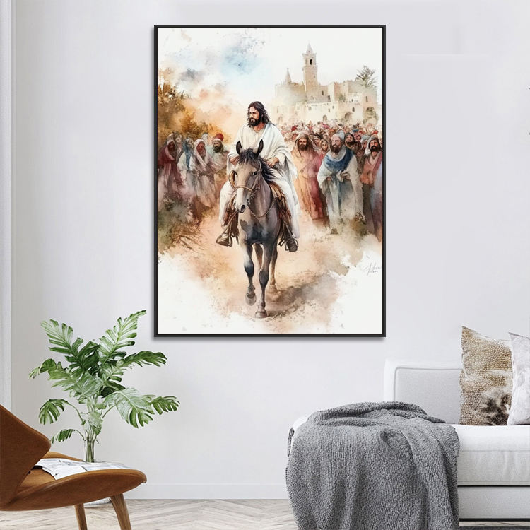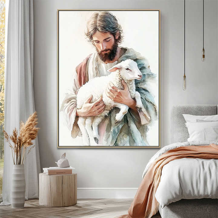 Home Decorative Watercolor Canvas Print Boho Religious Original Painting of Jesus Christian Wall Art