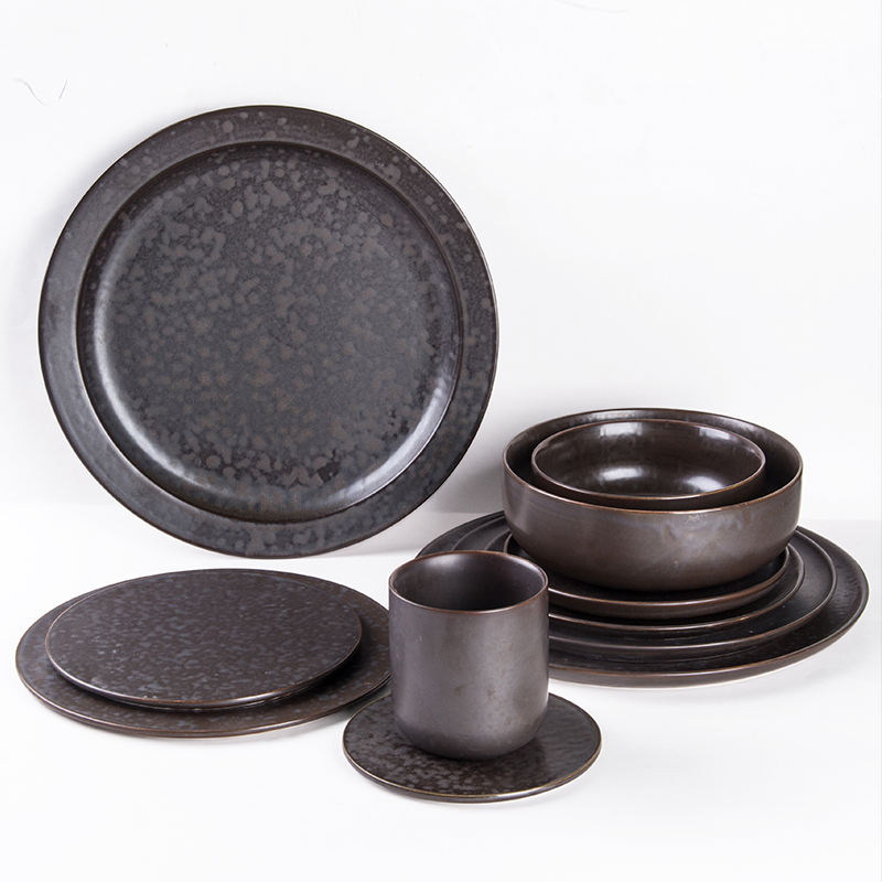 Home Dinner Tableware Round Glazed Ceramic Ancient Food Plates Porcelain Flat Tray Dishes & Plates Collection