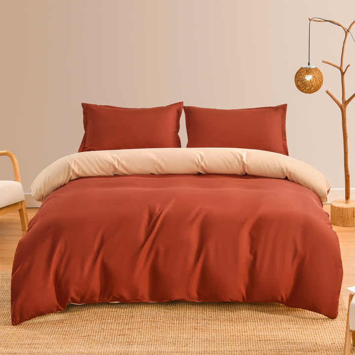 Nome del prodotto:Set di biancheria da letto in microfibra copripiumino in cotone lavato arancione tinta unita