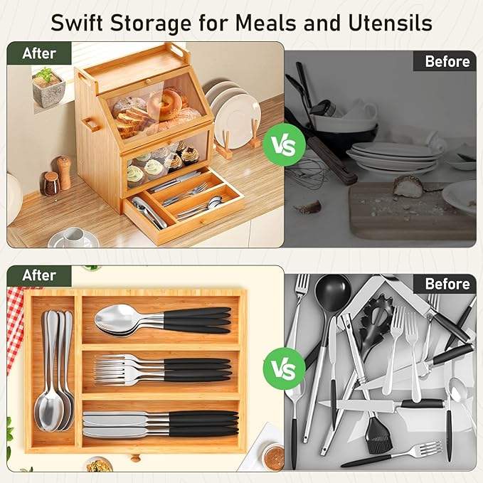 Contenitore da Cucina con Cassetto a Tre Strati Organizzatore in Legno a 3 Livelli Scatola Porta Snack in Bambù Portapane