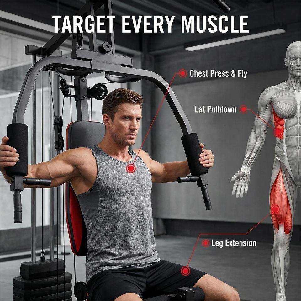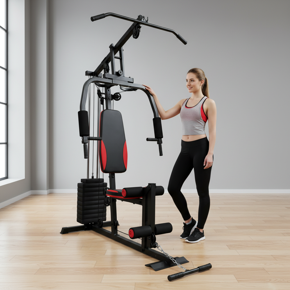 Funzione fitness completa: Questo attrezzo da palestra multi-stazione offre un'ampia gamma di esercizi, consentendo agli utenti di eseguire un allenamento completo di fitness su una singola macchina.