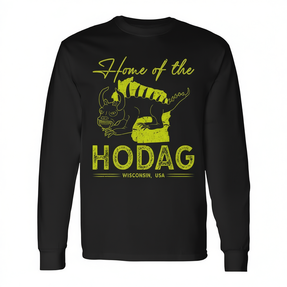 Maglietta a maniche lunghe Home Of The Hodag Wisconsin con design Cryptid Monster
