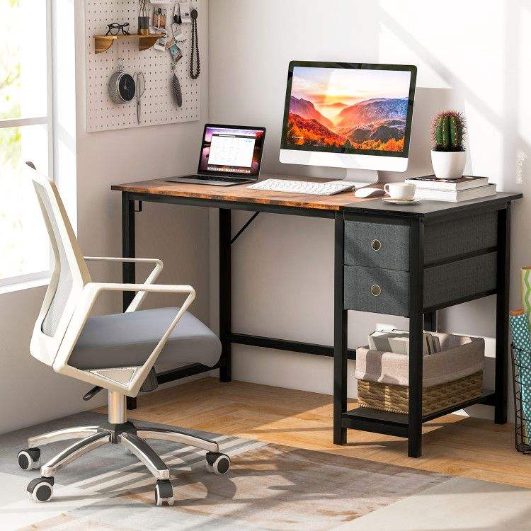 Scrivania per Computer da Casa/Ufficio 48/55 Pollici con 2 Cassetti e Gancio Appendiabiti