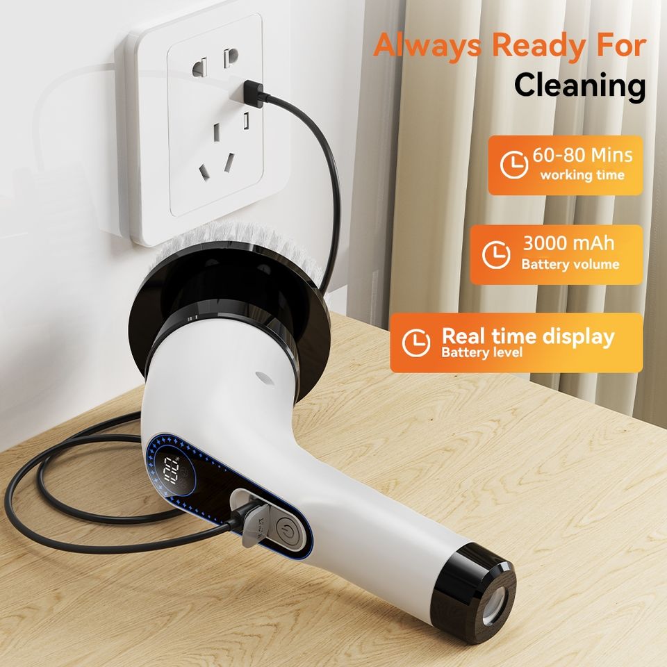 Spazzola Elettrica per Pulizia Casa con Manico Extra Lungo 55 Pollici, 7 Teste, Multifunzione Rotante a 2 Velocità per Bagno e WC