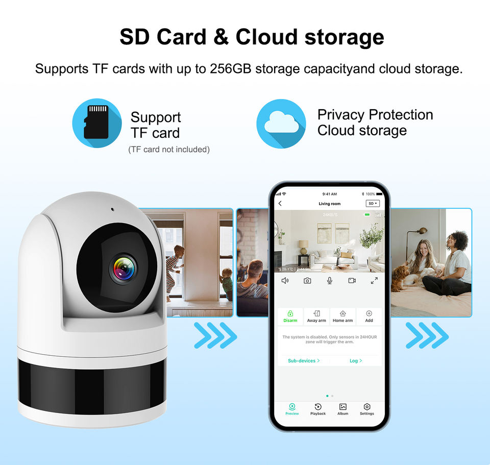 Funzione:Visione notturna, A due vie Audio, PAN-TILT, Microfono da incasso, Built-in Sirena, RESET, Colore completo