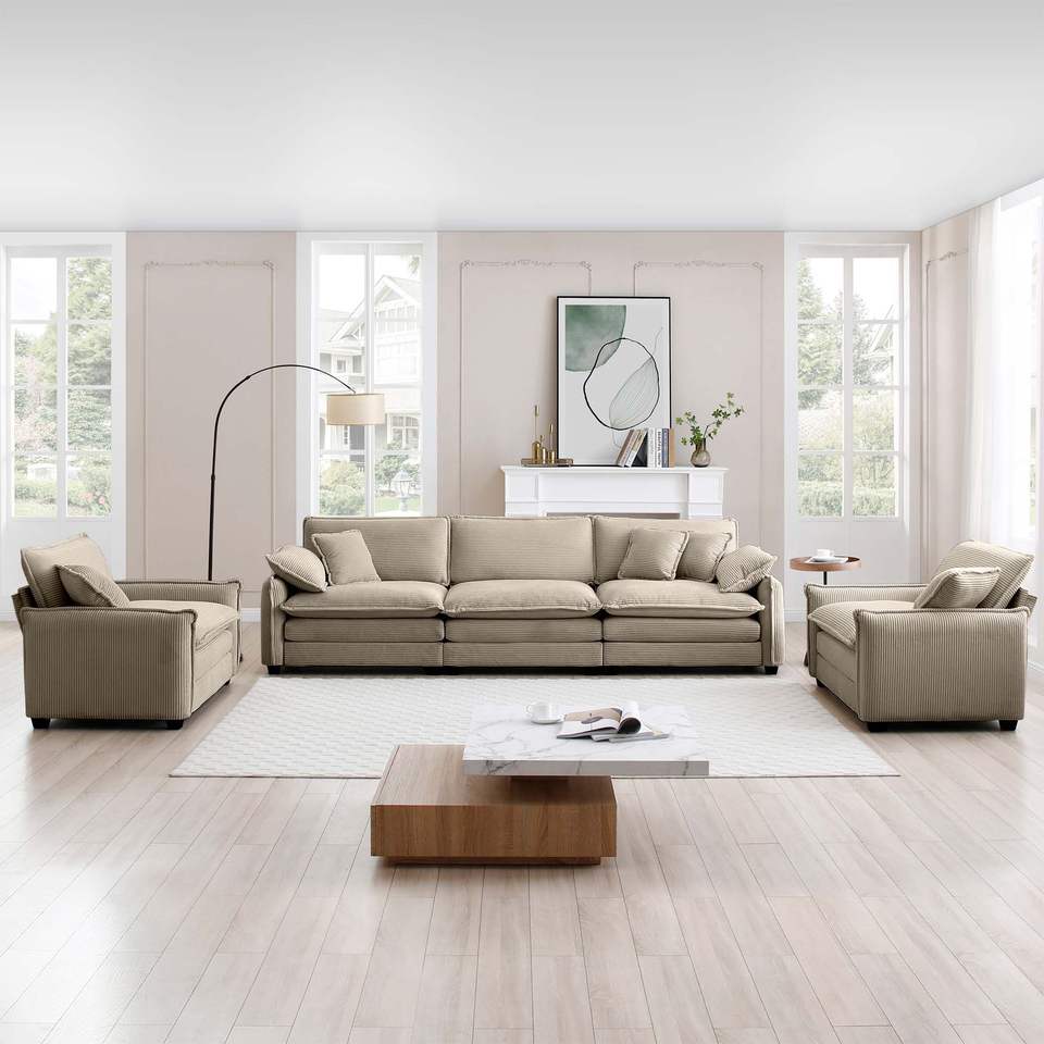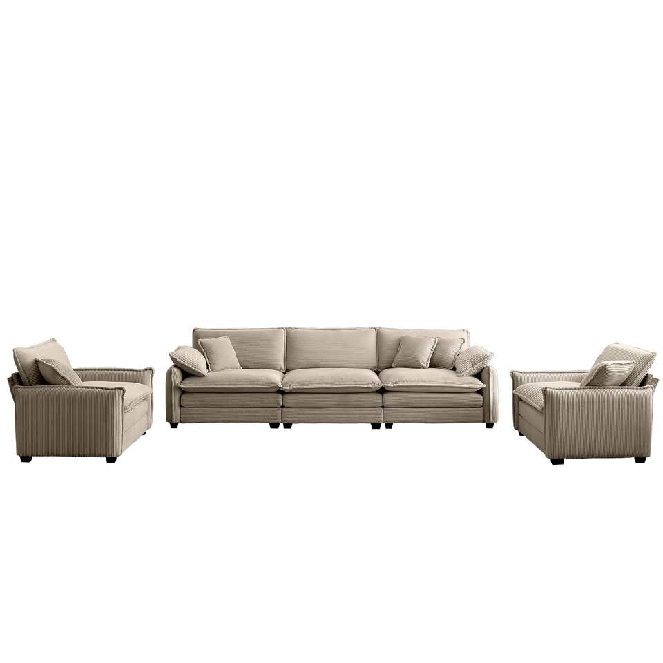 Set Divano a 3 Posti Stile Home Theater con Cuscini Morbidi e Guanciali, Set Soggiorno Caldo e Accogliente Composto da Due Poltrone Singole