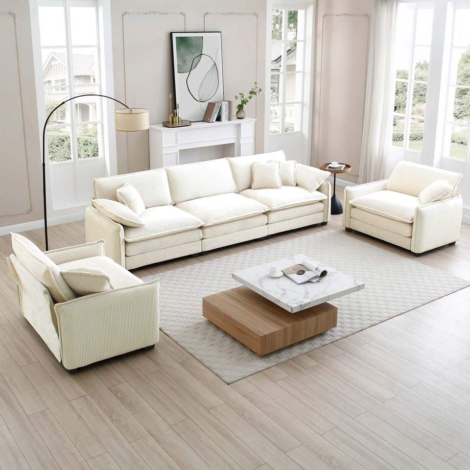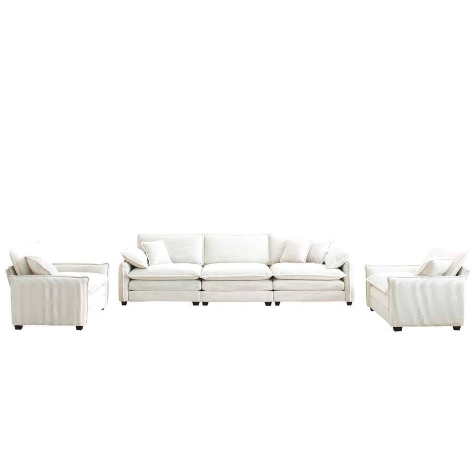 Set Divano a 3 Posti Stile Home Theater con Cuscini Morbidi e Guanciali, Set Soggiorno Caldo e Accogliente Composto da Due Poltrone Singole