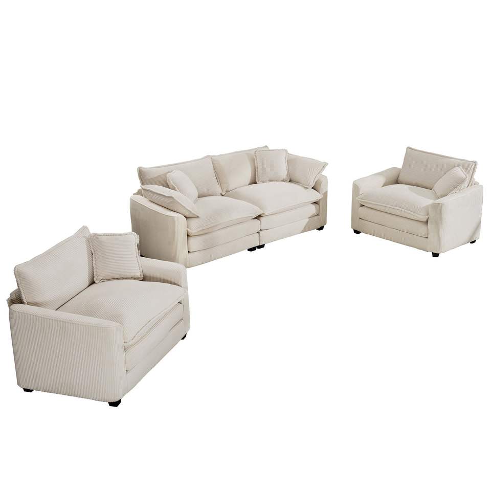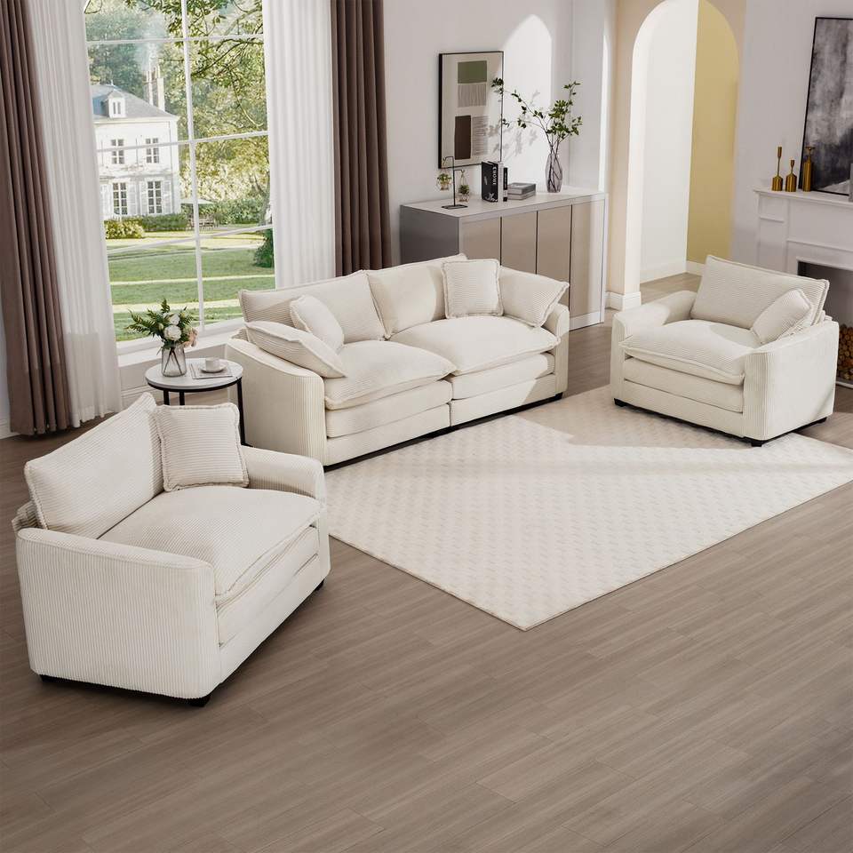 Set da Soggiorno Stile Home Theater, Divano Accogliente e Caldo con Cuscini Morbidi, Composto da un Divano a 2 Posti e Due Poltrone Singole