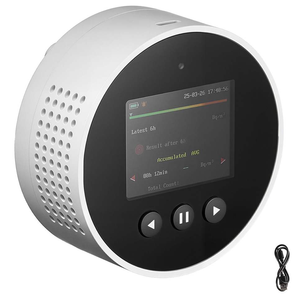 Misuratore di Radon per Uso Domestico da 3.3Bq/m3 a 37kBq/m3, Rilevatore di Radiazioni a Batteria Modello D0100X3R3CJ