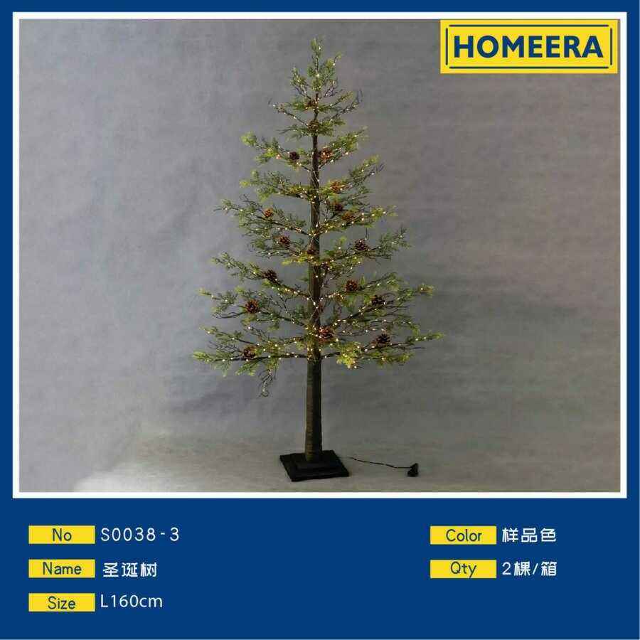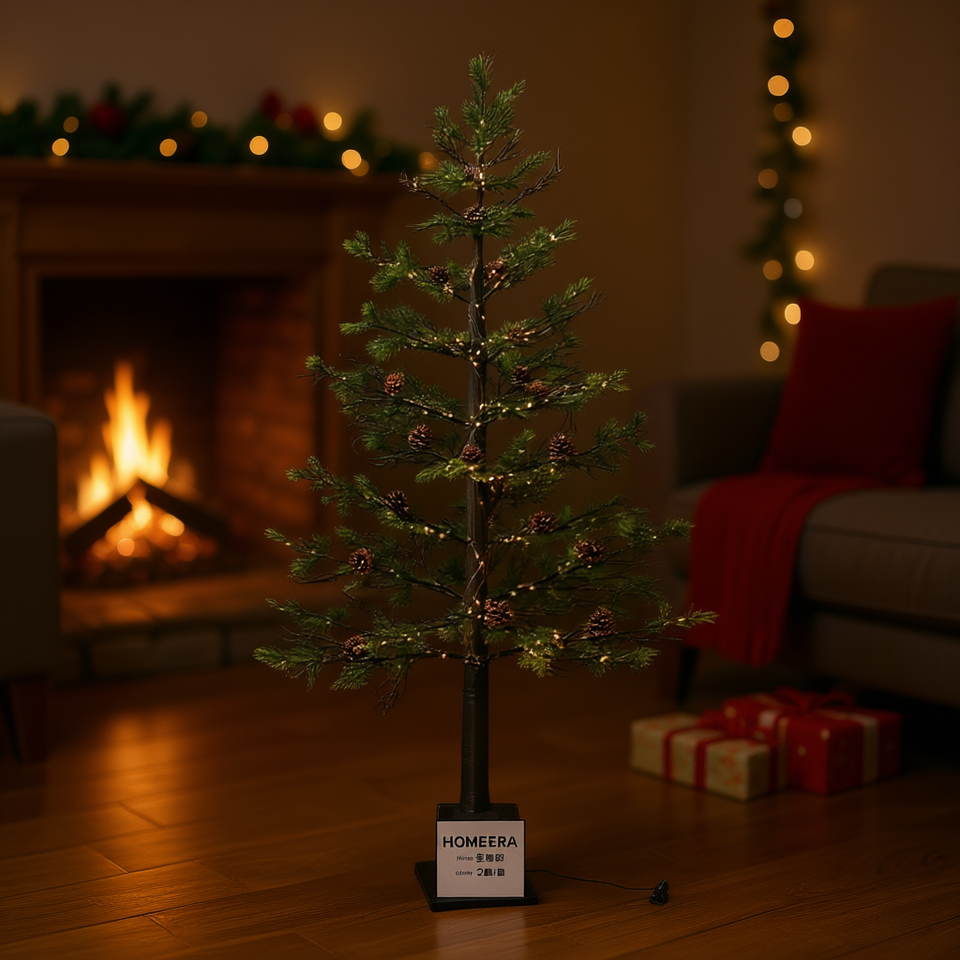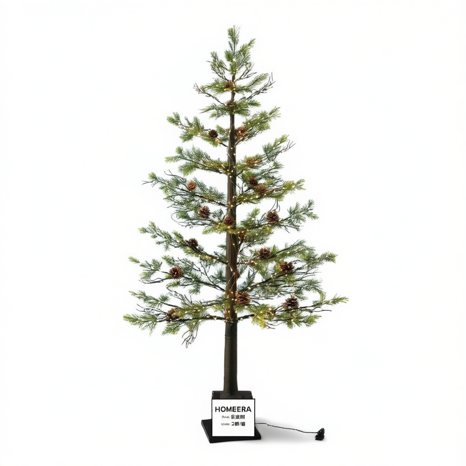 Homeera Artificial Christmas Tree 2.1m High Simulation Indoor Decorative Tree with Lights and Pinecones