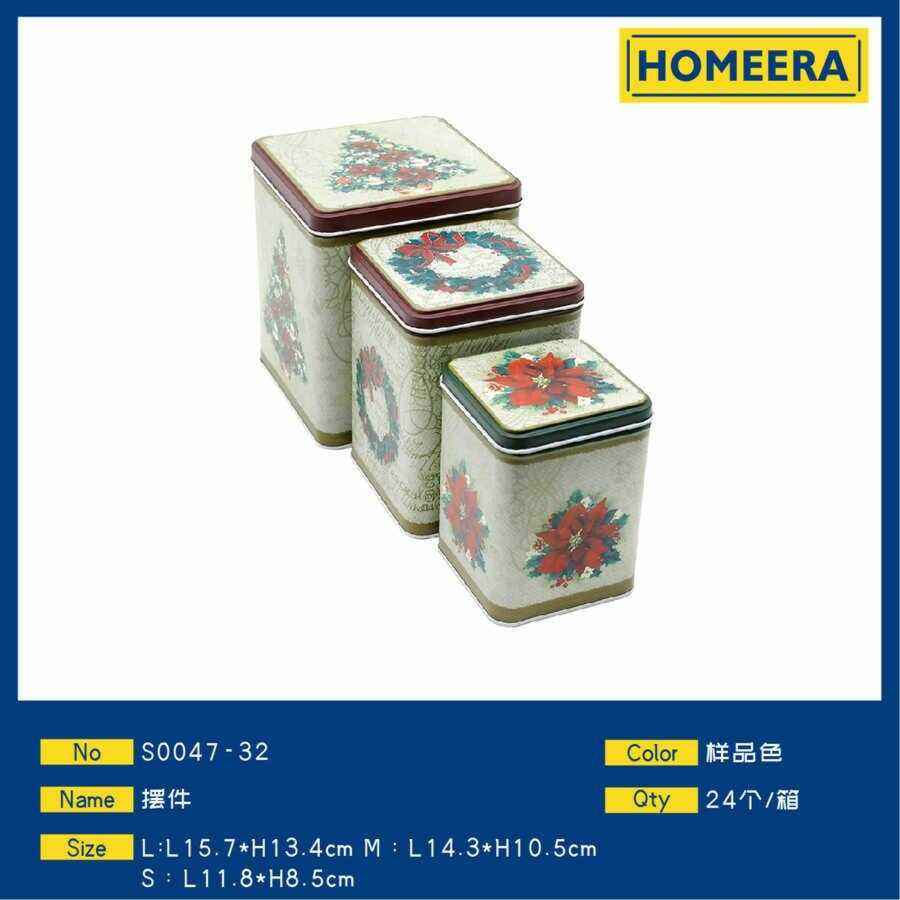 Homeera Christmas Storage Boxes Iron Rectangular Set Of 3 Decorative Holiday Containers For Home Storage