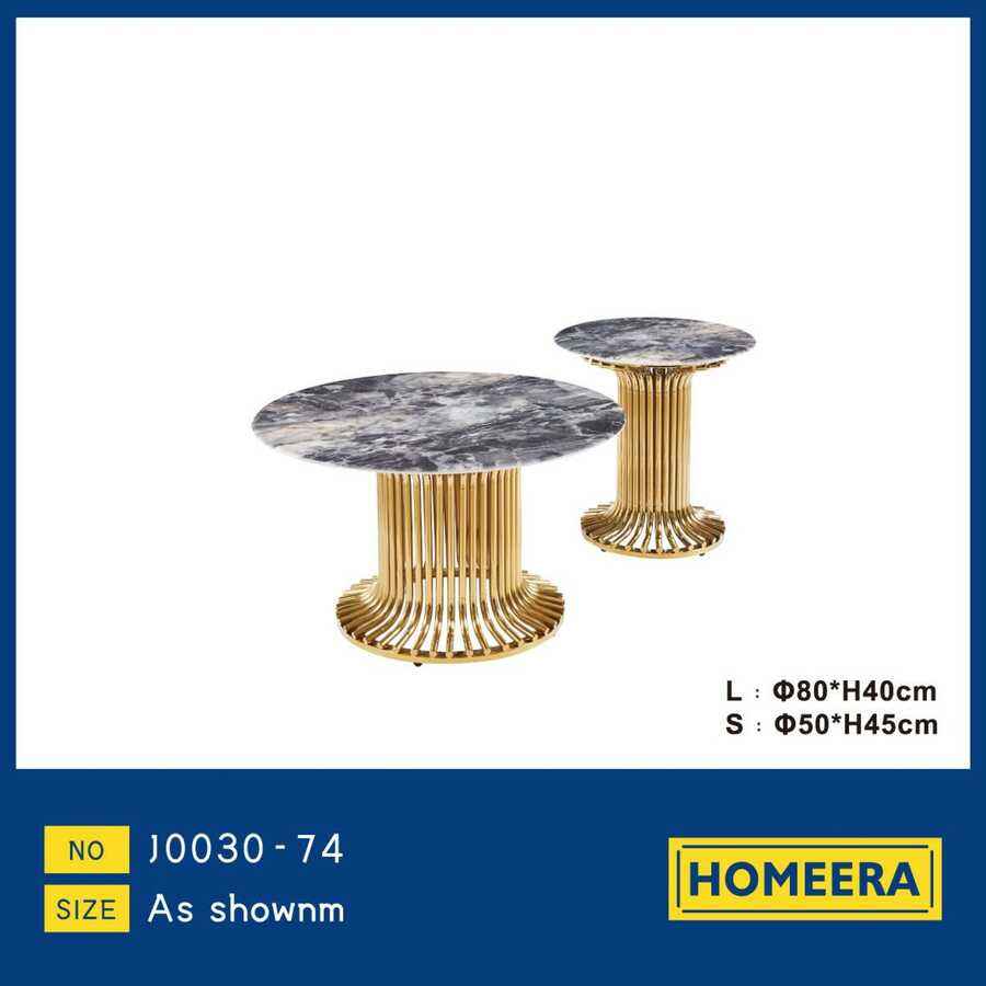 Tavolino da Caffè Homeera con Piano in Marmo e Struttura in Metallo, Design Moderno Rotondo per Arredamento Soggiorno J0030-74