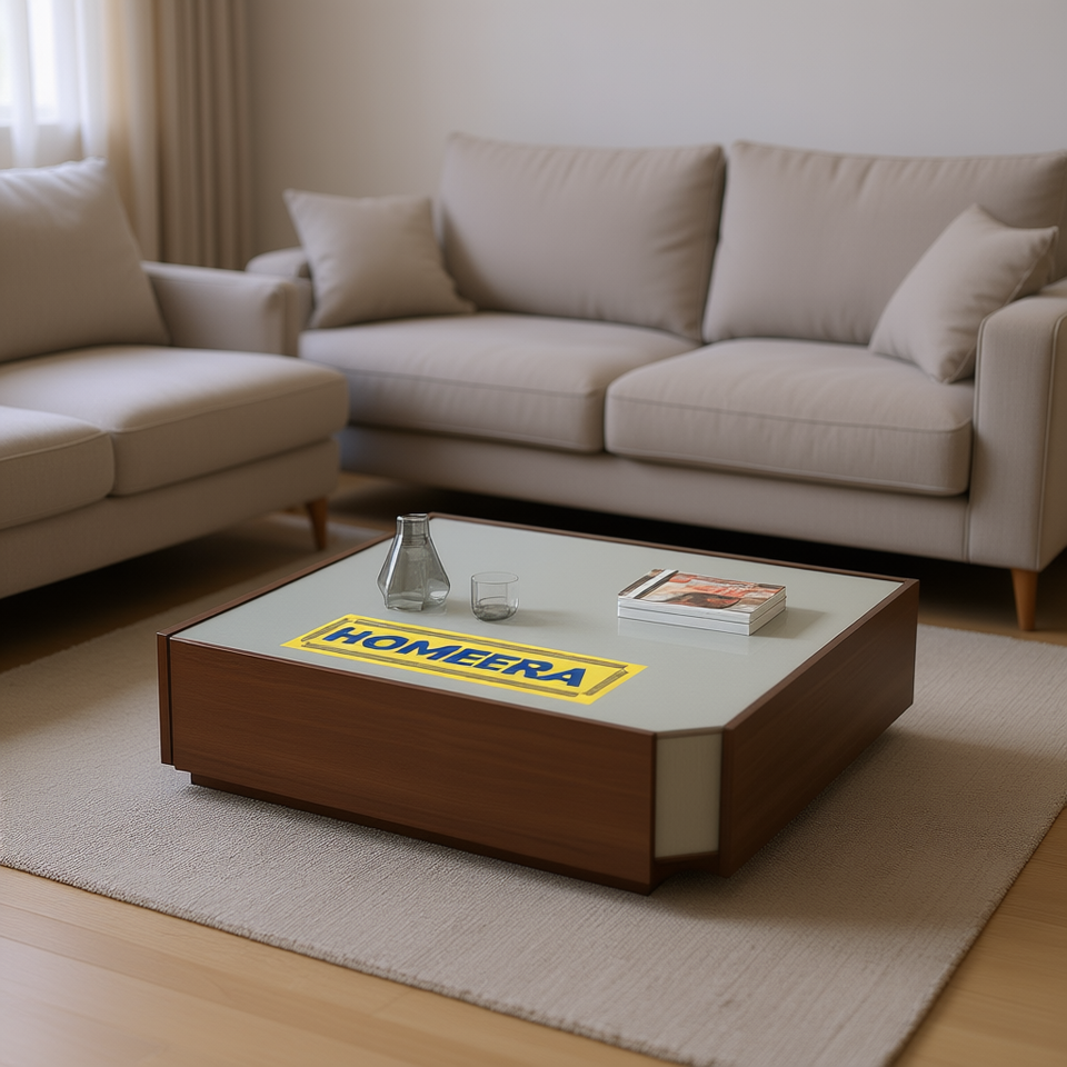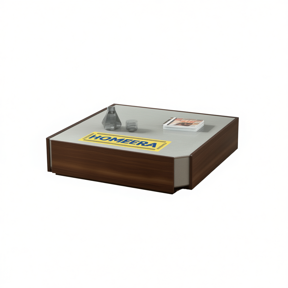Tavolino da Caffè Homeera L110*P110*H36cm con Piano in Vetro Temperato e Struttura in Legno, Mobile Contenitore per Soggiorno, Design Moderno