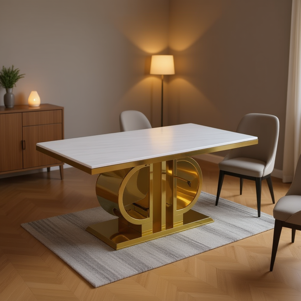 Tavolo da Pranzo Homeera con Piano in Marmo e Base in Metallo Dorato, Design Moderno Rettangolare, Set Completo per 4 Persone