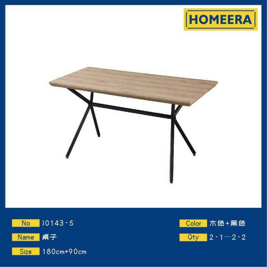 Tavolo da Pranzo Homeera con Piano in Legno e Gambe in Metallo, Rettangolare per 4 Persone, Design Moderno e Minimalista, Arredamento Domestico Stabile