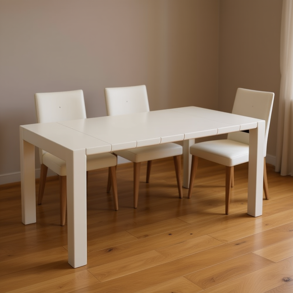 Tavolo da Pranzo Allungabile Homeera, Bianco Crema, Rettangolare in Plastica, Design Moderno e Minimalista, 6 Posti, Arredamento per la Casa