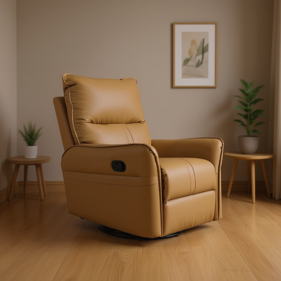 Poltrona Reclinabile Homeera in Pelle, Seduta Singola, Arredamento Moderno per Soggiorno, Cuscino Marrone, Schienale Imbottito, Braccioli Imbottiti