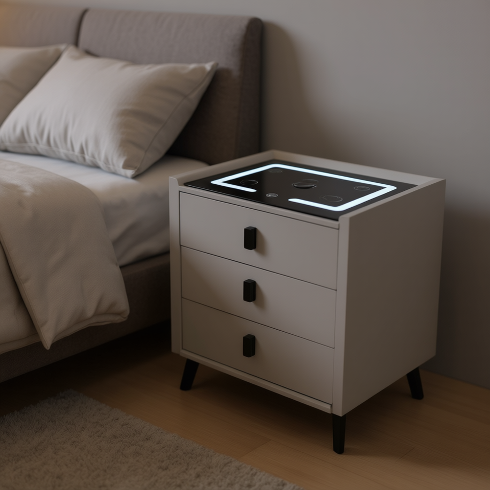 Comodino Intelligente Homeera 50x40x60cm Grigio Chiaro con 3 Cassetti, Comodino Moderno per Camera da Letto