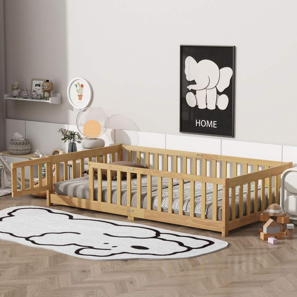 Homerich High Quality Full Size Modern Montessori Convertible Eco-Friendly Wood Floor Bed for Babies and Toddlers