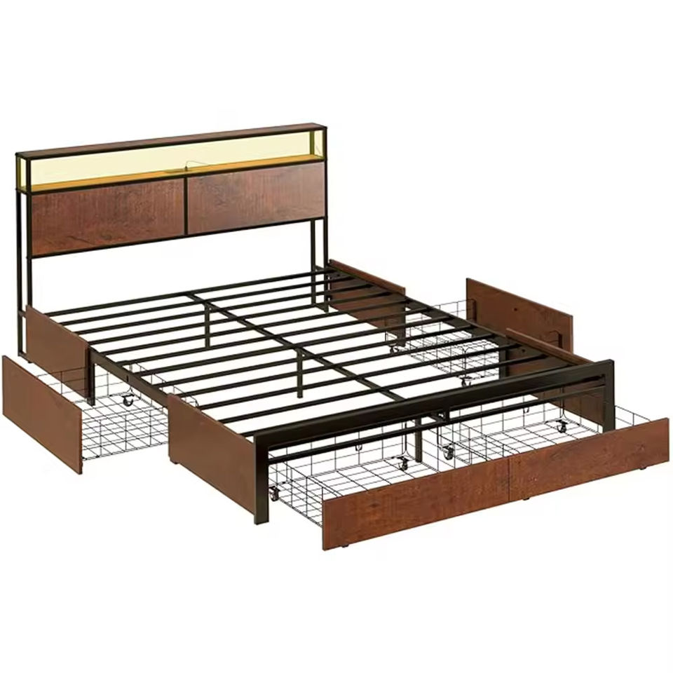 Letto Moderno Homerich con Struttura in Metallo Regolabile, Testiera e 4 Cassetti Portaoggetti, Colore Personalizzabile