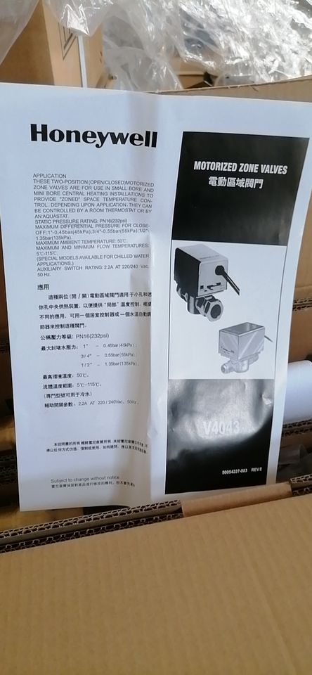 Honeywell ZONE VALVE V4043C1347B V4043C1362B Solenoid Valve 1/2"BSPT/220v,50Hz,2-way