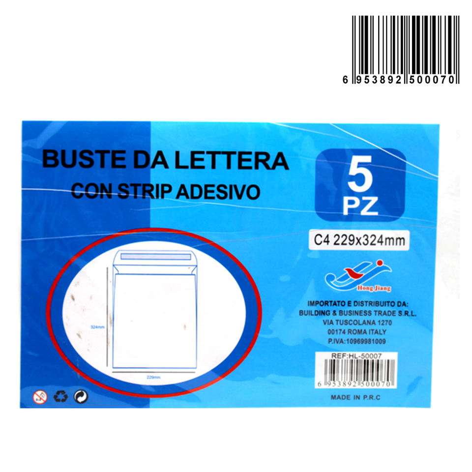 Busta HongJiang C4 229x324mm con striscia adesiva per spedizioni e uso in ufficio