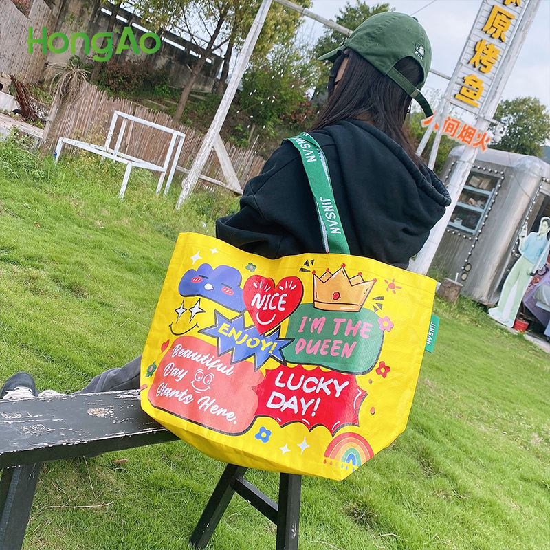 Hongao Custom grande borsa impermeabile in tessuto PP borsa della spesa per la protezione ambientale del supermercato spessa per lo Shopping
