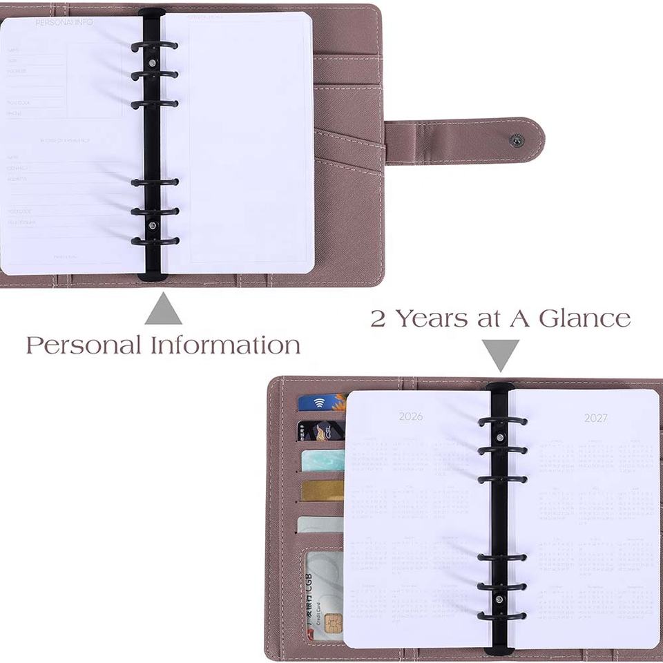 Hongbo Best seller 2026 A6 settimanale/Planner giornaliero inserti in pelle 6 raccoglitori ad anelli per una migliore vita/lavoro/regali di festa in lamina per la scuola