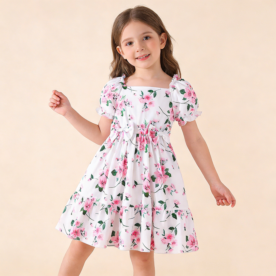 Abito da Cerimonia per Bambine Hongbo, Elegante Vestito Floreale Personalizzato per Damigelle, Abito da Principessa per Bambine