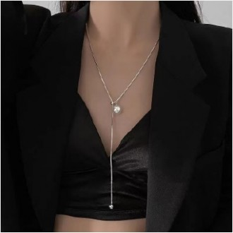 Hongdae Onni Long Pearl Necklace Fashion Accessories with Bead Chain Onni Point Necklace Jewelry