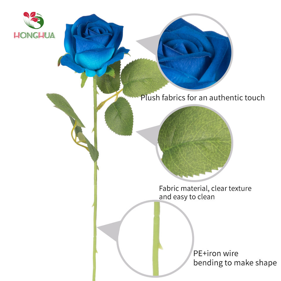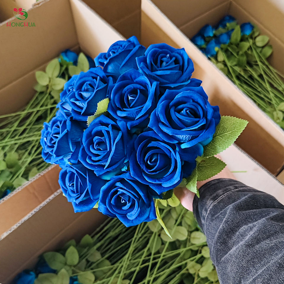 Honghua fabbrica a buon mercato fiori artificiali velluto vero tocco rose di seta finte rose blu polverose con stelo