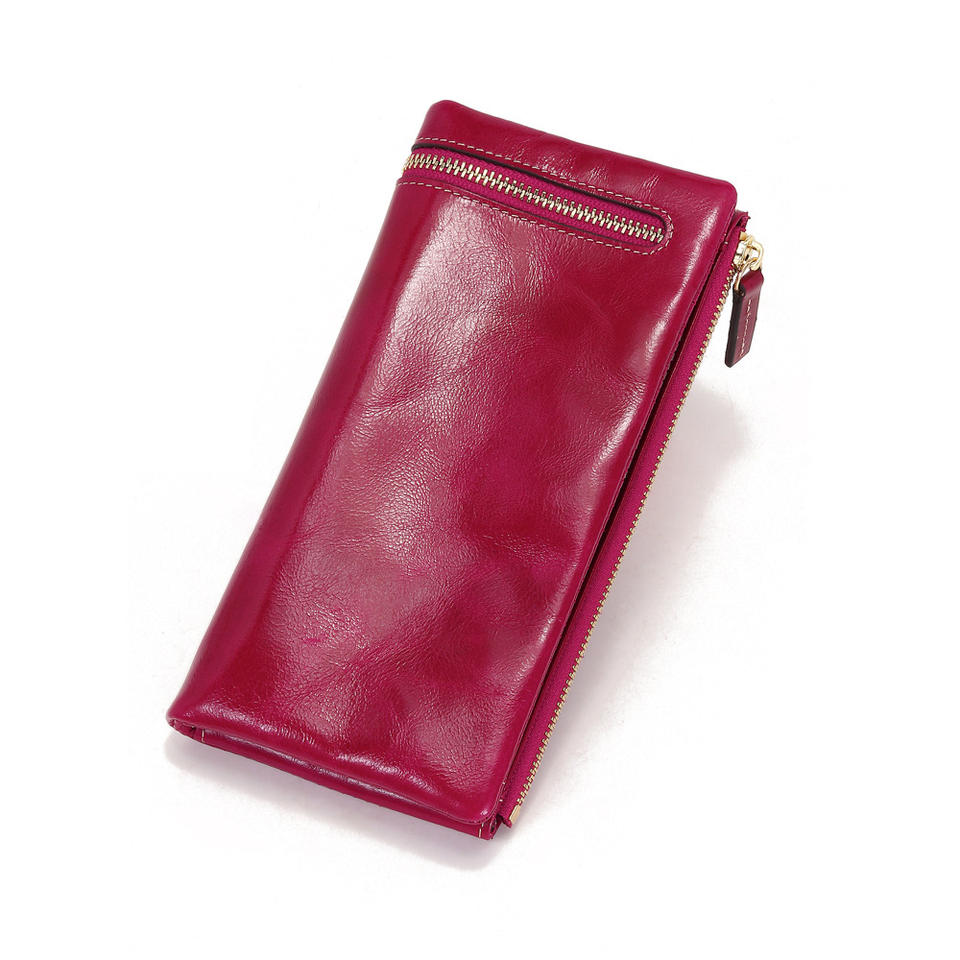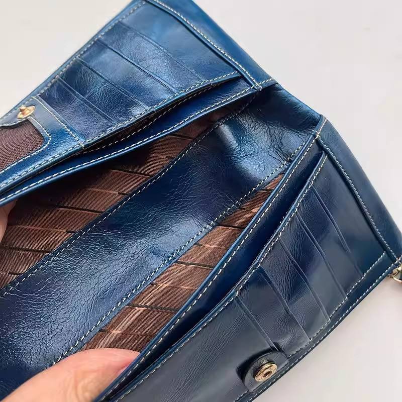 Portafoglio Lungo in Vera Pelle Premium Hongli per Donne, Pochette Vintage Personalizzata Blu Lucido