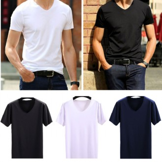 Hongsmall Men's V-Neck Cooling T-Shirt Functional Seamless Short-Sleeved Ice Cool Big Size Short-Sleeved T-Shirt