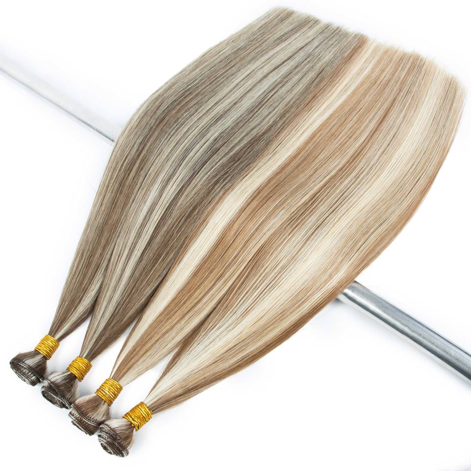 Extensioni per capelli umani Remy con cuticole allineate Honor Hair, biondo chiaro e balayage, con trama a macchina