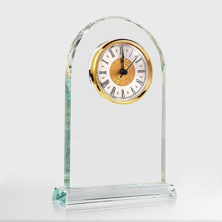 Orologio da Tavolo in Cristallo Trasparente con Logo Personalizzato Inciso al Laser 3D in Stile Vintage con Confezione Regalo per Matrimoni