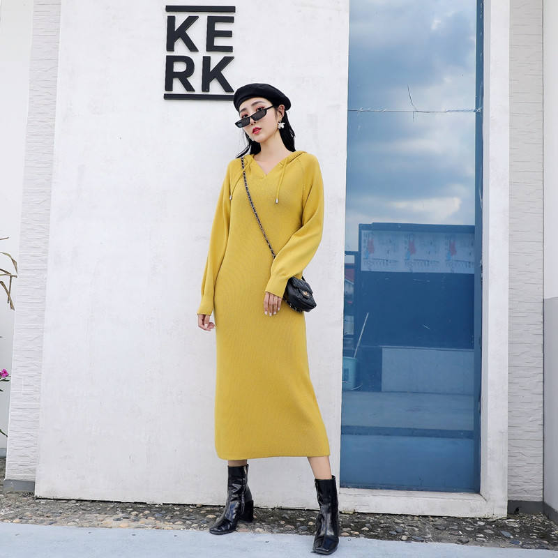 Con cappuccio manica lunga sotto il ginocchio gonna lunga stile autunno e inverno lungo largo stile Preppy abito dimagrante abito Casual