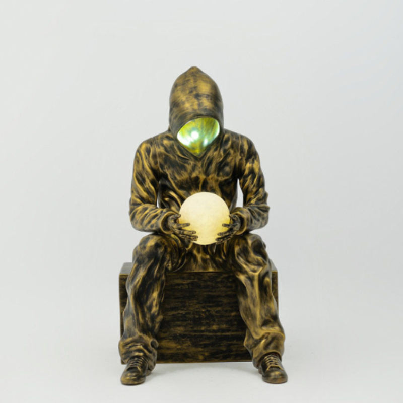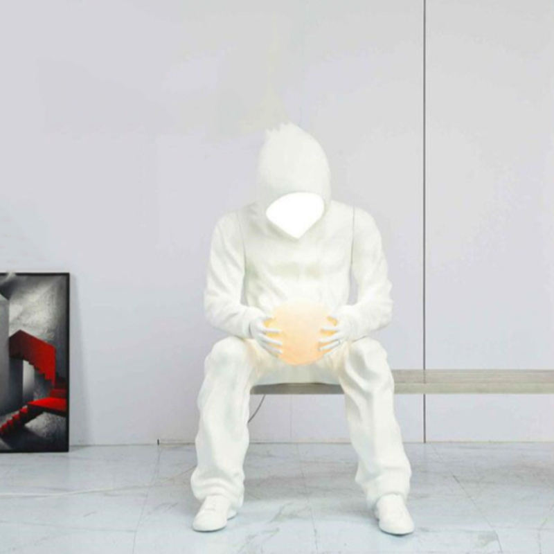 Hoodie Headlight Faceless Boy Sculpture Floor Light Luminous Hoodie Bar Shop Floor Lamp Decoration Mall Hall Helmet