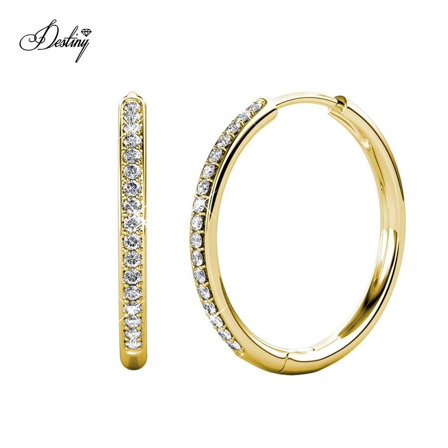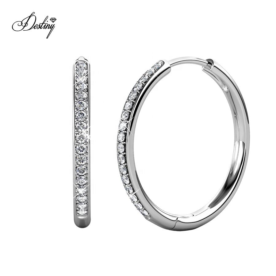 Orecchini a Cerchio Impreziositi con Cristalli Swarovski Daisini, Ipoallergenici in Argento Sterling 925, Minimalisti e Semplici, Rotondi 20mm
