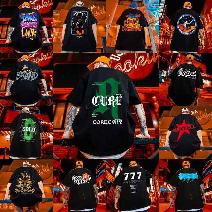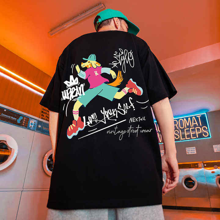 Hop Rap Men's Oversized 100% Cotton T-shirt Breathable 220 Grams Knitted Top Street Clothing Europe America Style Silk Screen